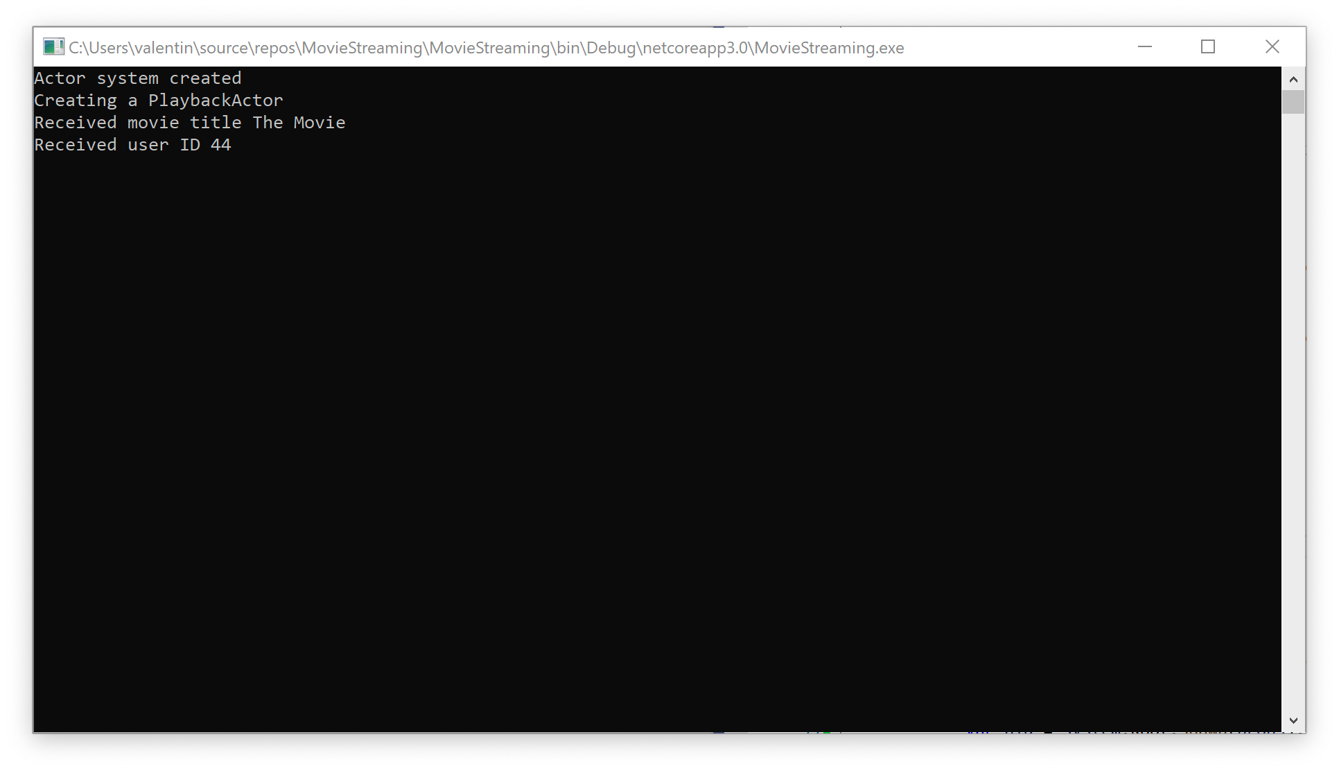 If we run our applications now, nothing will happen because the ReceiveAsync method of the PlaybackActor actor does not contain business logic.